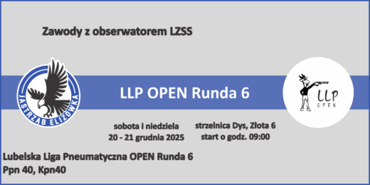 W weekend, 20-21 grudnia 2025 zapraszamy serdecznie na ostatnią w tym roku rundę @Lubelska Liga Pneumatyczna. Zawody z kalendarza LZSS odbędą się na naszej strzelnicy pneumatycznej w Dysie k/Lublina. Przewidziano 2 konkurencje w formule Open:Sobota, […]